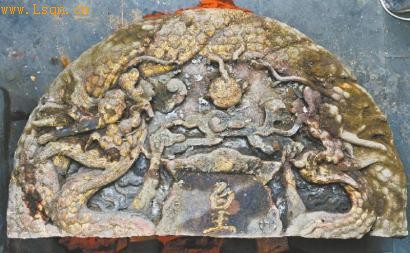 “石碑是今天早上9点多在工地里挖出的。”大慈寺方丈大恩法师说。挖出时只有上半部分,工人们立即停工寻找石碑下半部分,但没有任何发现。WWW.LsQN.CN“这个切口很旧,应该不是刚刚施工挖坏的,可能这块石碑很早以前就被弄坏了。”大恩法师说。