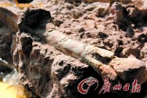 (记者李文慧摄影报道)三水化石爱好者赵灿辉的一次雨后出行,竟在开发中的工地内发现了近千件哺乳类以及爬行动物化石!昨日,中科院等专家经过初步观察后判断这批化石属于距今约5300万年前的始新世早期,为近年来三水盆地乃至广东省[注: 东省 拼音: dōn?? shěn?? 解释: 1.古代中央官署之一。南朝齐指集书省,为皇帝的侍从顾问机构。以散骑常侍为长官。]内发现哺乳动物化石最多的一次。由于这批化石保存较好,预测研究后会发现与过去不同的哺乳类属种,为该地史时期生物群面貌增添新资料。