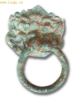 铜镏金衔环铺首,典型皇家规格。