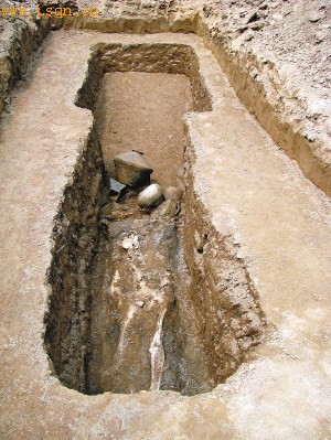 3座东周墓专家推断都是秦人墓。在其中一座四壁光滑的墓葬中发现了一个腰坑,坑里有殉葬动物。市文物保护考古研究院的专家张翔宇告诉记者:“这是商代的丧葬习俗,通常会挖一个腰坑殉狗。WwW.lSqN.CN但这里殉葬的动物还没有做检测,不知道是什么。这种有腰坑的丧葬习俗在秦人墓里很少发现。”此外,在这座墓里还发现了陶盂、陶罐、陶鬲、玉饰、玉玦、贝形饰等随葬品。