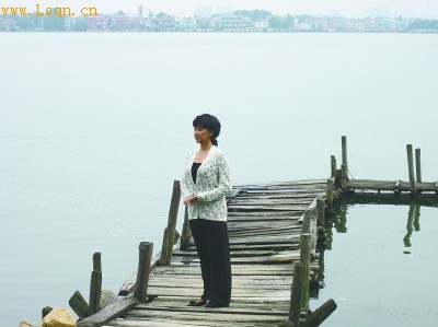 著名演员朱琳吟诗湖畔 记者钟磬如