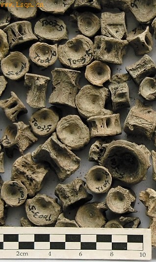 这些鱼骨,都是淡水[注: 淡水,是水质中仅有微量溶解的氯化钠的水,是相对于海水或矿泉的一种水体。-danshui]鱼的骨头,基本有4种:鲫鱼、黄刺鱼、鲤鱼、黑鱼。“古人吃的鲫鱼比较大,有半斤上下,跟我们现在常吃的养殖鲫鱼差不多。”
