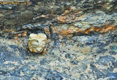 考古现场的武汉大学历史学院教授张昌平经过近距离仔细观察发现,这个青铜器[注: 青铜器是指以青铜为基本原料加工而制成的器皿、用器等。WWW.lsqN.CN青铜,古称金或吉金,是红铜与其它化学元素(锡、镍、铅、磷等)的合金,其铜锈呈青绿色,因而得名。]物“兼有人型和兽的特征”,他告诉记者:“它的眼睛上有角,鼻子上有类似老虎的纹饰,还有獠牙,我认为称其为‘神像’更合适。它与三星堆的人面青铜面具和大洋洲双面神人青铜头像有相似之处,但后两者更接近人型。”