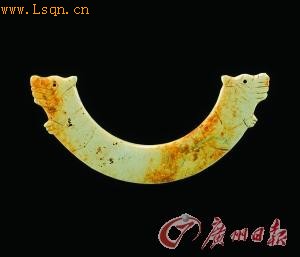 凌家滩文化常见的玉器器类,有璜、环、镯、玦、璧、斧、钺以及管珠等,这些器类构成了凌家滩文化玉器的基本组合,也是凌家滩文化先民继承、发展了长江中下游地区以侯家寨、马家浜、北阴阳营早期文化等为代表的前一阶段玉文化传统的成果。其中,璜、环、玦等几类玉器,无论从器型、质料到制琢工艺,都可见到前一阶段玉文化传统的遗传基因,如质料多见玉髓(玛瑙),工艺多见应用线锯切割技术。www.LSqN.Cn不过,凌家滩玉器在继承传统的基础上又有许多推陈出新之处。以璜为例,不仅出现了一墓多璜(有三座墓葬出土玉璜甚至在10件以上)的用玉现象,而且玉璜的形制除了条形、桥形、半环形、半璧形等常见形制外,新出现了在玉璜弧边外缘和两端附加装饰的新形制。其中玉璜弧边外缘,既有弧顶部附加凸出的芽状饰或几枚齿牙装饰的,也有外缘整体遍琢齿牙纹的;玉璜两端的装饰,则主要见有双首同类动物合雕和异类动物合雕两种不同的造型,前者有双虎首半环形玉璜,后者有龙凤首条形玉璜。而双首动物合雕,似乎也是凌家滩玉器造型的一大特征,如1998年二十九号墓出土玉鹰的两侧鹰翅上,就分别琢刻了猪首。