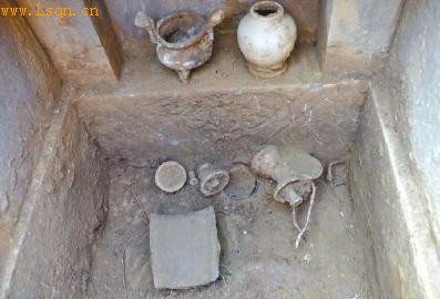 10月28日上午9时,阆中市文物管理局接到该市七里工业园区管委会工作人员电话称,在七里新区河口村一施工工地,工人发现了一座古墓。文管局立即派员赶赴现场,并展开抢救性考古发掘。共出土陪葬器物5件,青花三足炉、青釉陶罐和白瓷杯各一件,青花象耳瓶一对。经过探测,在这座双室墓地旁边还有墓地,由于被大量的泥土掩埋,形成一个包。本月20日,再次进行抢救性发掘。经过发掘发现在双室墓的旁边又是一个双室墓,形成了四室墓,南北朝[注: 朝公元420年,东晋大将刘裕废掉东晋皇帝自立,国号宋。此后160 多年间,南方先后经历了宋、齐、梁、陈四个朝代,历史上总称为南朝。]向,每个墓室长约2.5米,宽度为0.96米,距离地面约为1.5米,考古人员认为这应该是一个四口之家的墓地。