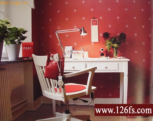 红底白点的超“萌”壁纸,彰显出女主人跳跃活泼的鲜明个性,简约的白色组合式桌椅为原本绮丽的宫殿注入了更为沉稳的内敛分子,绿植偷偷的告诉我们,它的主人是个热爱自然亲近生活的明媚女子。