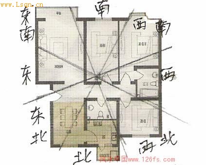 在设计方面的另一个问题是门门相对,而且气流可以通过前窗与后窗互通。在风水理论最忌气流互通,“气流直通财气流空”,这样不聚财,而只有曲线流通对人对财都有益处,因为“曲中有情”。正南卧室与北方卫生间门门相对,居住者易患肠胃疾病,而且在八运子山午向的房间,正南旺财的位置,由于这样设计严重影响居住者的财气。,所以我们需要考虑改进,