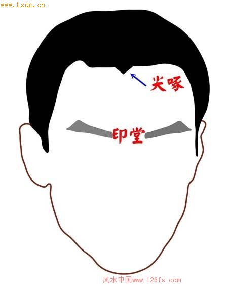 在面相学来说,在两眉之间的眉心,称为「印堂」,而「金鸡」者,指额上发脚的中间,出现了尖啄,像个鸡嘴,啄着印堂,故形容为「金鸡啄印堂。」大家请先看下图︰