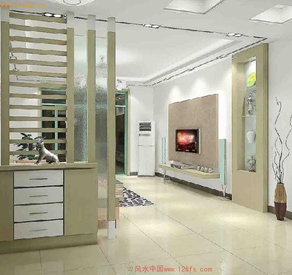玄关若不以墙来作间格,用地柜来代替也行,其上选择玻璃或通透的木架来装饰。地柜可用作鞋柜或杂物柜,上面则可镶磨砂玻璃,这样既美观实用,同时也符合下实上虚之道。必须注意的事,玻璃不同镜子,会反射的镜子通常不可面向大门,因为会将家中财气反射出去,但磨砂玻璃则无此顾虑。