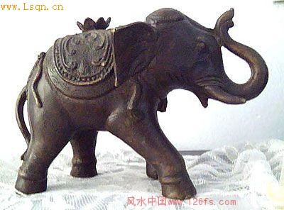 大象善于吸水,水为财,若摆放一只铜大象在家中,则大财小财均为己所纳。