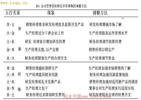 (1)职位的正常生克生:木生火,销售经理根据企业产品在市场的占有率和销售增长率的状况并结合外部市场的调查分析来协助企业家(总经理)进行战略管理;火生土,企业家以战略眼光和决策指导研发经理开发新产品;土生金,研发经理以本部门设计的新产品,指导生产经理完成生产上的试制过程;金生水,生产经理将他对研制新产品所用的资源状况报给财务经理,以便进行成本核算;水生木,财务经理将他对新产品制作的成本核算提供给销售经理,以便资助营销策略的实施。