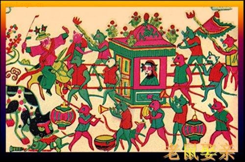 大红花轿抬新娘,群鼠送亲喜洋洋。