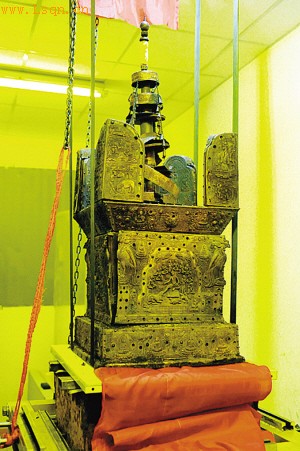 阿育王的这次佛舍利再分配肯定包括了佛顶骨舍利的再次转移供奉。但佛顶舍利在这次空前规模的舍利再分配过程中到底分配供奉到哪里,现在也很难说清楚。但根据后世的记载,我们知道在南亚的西北地区以及中国的南京都有被认为是阿育王时代供奉起来的佛顶舍利。