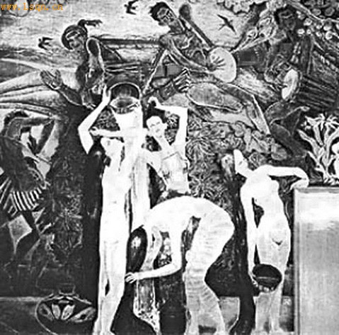 袁运生出来解释说,这里画的是傣族的历史,不是现在。泼水节的故事在傣族民间传说里,就是说有个魔王总是欺压百姓,后来被傣族少女杀死,人们泼水冲洗魔王留下的肮脏血迹。这幅画表达了傣族人民追求幸福的愿望,是很有诗意,很浪漫的。经过运生这一解释,傣族学生都觉得这幅画很好,要说有意见的话,也是觉得还没有把傣族人民今天的幸福生活更全面地表现出来。