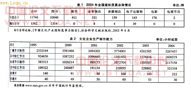 但是,也应看到中国部分文化企业已经开始提高自身的创新能力。随着市场在文化资源配置中的基础性作用得到进一步发挥,市场机制的不断完善为精神文化产品创作、生产创造了良好的条件,极大地拓展了文化产品流通和消费空间,培育了中国文化企业竞争力。从表2可以间接反映出部分文化企业创新能力的提高。