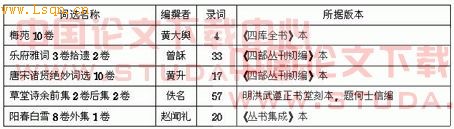 上表共选列6种《草堂诗余》版本,它们选录周邦彦词皆超过50首,在所选宋代词人词作中,数量皆名列前茅。而陈耀文的《花草粹编》标举“花间”、“草堂”,也仍然不脱《草堂诗余》的影子。该编共选录唐五代宋元人词3000多首,其中选录周邦彦词多达107首,更大大超出一同入选的其他宋代词人词作的数量,堪称是历代词选中对周邦彦词所做的一次最大规模的选录与集成。明代词坛喜艳好俗,与南宋崇尚雅正形成鲜明对照。周邦彦词既有雅正婉约的一面,也有俗艳绮丽的一面,这两面的风貌既符合明人以婉约为正的词学思想,也迎合了明人嗜艳尚俗的审美情趣;周邦彦词格律精工,有法度可依,这在歌谱已经失传的时代,也正好为明人依格律谱填词提供了文本范例。这两点,大概正是周邦彦词得到明代词选家青睐并在明代得以广泛传播的原因所在。