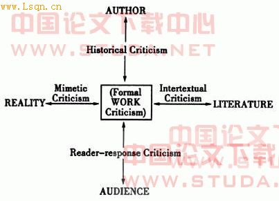 美国著名学者艾布拉姆斯《镜与灯浪漫主义文论及批评传统》一书总结了西方自柏拉图以来的文学批评史并概括为四大学说:即模仿说、实用说、表现说及客观说。他还用三角形图示出作者、作品、读者和宇宙之间的关系。美国另一位学者基思在1994年出版的《批评视角》一书中继承和发展了艾氏理论,也构建了一个文学批评图,图示出作者、作品、读者、现实和文学五者之间的关系。二者的共同点都是采用了系统的方法示意文学批评理论中基本要素之间的关系。不足之处是二者都是平面图,建议在此基础上建立文学批评的立交桥。