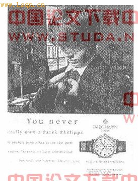 形象之间(通常是产品本身)建立比拟或隐喻联系是很多优秀广告的一个共同特征。下面这则为豪华手表百达翡丽所做的广告(下图)就是纯粹为了表明比拟关系而将两个形象集合到一起。在这一广告中,黑白印刷的产品与一幅精致的黑白照片相并列。黑白照片表现了一位父亲在耐心的为他的孩子系领带的场景。这幅黑白照片表达深厚的父子之情。由于广告中的两个形象似乎并没有太大的关联,这个时候广告中的文案有助于我们做出正确的理解:“你不可能完全拥有一块百达斐丽,你只是在代替你的下一代在照管它而已。”黑白照片表现的是父子之间的情感,情感虽然是永恒的,但却很难触摸。这时结合广告中的文字,我们就能明白广告的意图:“父子之间的情感虽是永恒的,但当亲人离你而去时,这种情感就变得不可触摸而无所依托。‘百达斐丽’作为传世之物,代表了父亲对孩子的关怀和永恒的爱,它是父子情感的承载,从而让这种情感有所寄托。”广告通过并列的视觉结构把黑白照片和手表两个独立的形象联系在一起,通过共同具有的永恒的情感和持久的价值等抽象特征而联系在一起,从而也把意义自然而然地转移到“百达斐丽”上,此时的“百达斐丽”已不仅仅是普通意义上的一块手表,它已然成为两代人之间永恒情感的象征和传世之物。 正如朱迪斯·威廉森所说的那样,视觉结构凭借其不确定性可使两个互不相关的实体之间的联系显得“自然”,让受众认为是理所当然的是,而不去深究。广告通过视觉结构的不确定性,使原本没有任何关联的父子间永恒的情感和百达斐丽手表以及五星级酒店和宝马汽车联系起来,很“自然而然”的为原来没有意义的百达斐丽和宝马创造了新的象征意义。 2.奢侈品广告中视觉风格的符号化作用 视觉风格是指构成形象的要素诸如形状、颜色等形成的图片整体的构图风格。事实上,视觉风格是传达意义的一种比较微妙的手段,风格与意义之间有一种可以凭直觉去感觉到的联系。韦尔奇和贝克的研究均表明,在广告中,视觉风格的主要功能是标明社会身份,并表达关于这一身份的某种特定观念。事实上,与社会身份的这一特征相联系的风格特点相互映照,为奢侈品牌所作的广告往往具有简约、井然有序的风格。需要所说明的是,在更为复杂的情况中,这一概括仅仅代表这一个方面。 斯图尔特·尤恩(Stuart Ewen)指出,奢侈品牌的广告往往表现为被称为古典主义的风格。那么究竟何谓古典主义呢?艺术史学家历来认为,古典主义以美术为主导,与文学、音乐、建筑等基本同步,并与理性主义、科学主义、历史主义等人文思潮相联系,虽几经衰荣,且形式多样,但严谨、雄伟、明晰、和谐、精细以及清晰的形式与崇高的内容的完全一致,这一切作为古典主义的要素,获得了某种永恒的稳定。正因为古典主义高度尊崇古代艺术,classic?一词有时用来指同类事物中最好的一种。古典主义历来就是一种排斥与抑止的风格。它注重古典艺术形式的完整、雕刻般的造型,追求典雅、庄重、和谐,同时坚持严格的素描和明朗的轮廓,极力减弱绘画的色彩要素,强调自然、淡雅、节制的艺术风格。奢侈品广告中所表现出来的视觉风格似乎正是古典主义的这些方面。  上一页 [1] [2] [3] [4] [5] 下一页