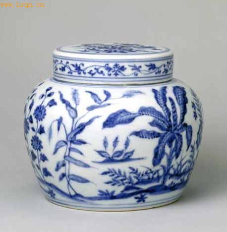 此罐是成化青花器的代表作,胎轻釉润,光洁无瑕,如脂似玉。纹饰线条纤细柔和,飘逸潇洒,乃受当时宫廷审美趣味的影响。瓷画在空间处理上疏密得当,明快疏朗,富于清新典雅的艺术效果,是存世不多的成化青花罐中之佼佼者。