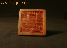 直径7.1×7.1 钮高22厘米。 柳州市博物馆珍藏的这件铜印,为国家二级文物,1964年于柳州市征集而得。这件青铜印,面径7.1×7.7厘米、通高3.5厘米、重0.7公斤。印为阴文屈曲篆书:“河池守御千户所百户印”。有边栏,梯形柱钮。左右边上有阴文楷书:“河池守御千户所百户印”和“礼部造明洪武三十五年十一月”。在厚径尚有“守字一千七百八十一号”字样。该印造型古朴凝重,书体洒脱工致是研究明代地方史及军制的实物资料。