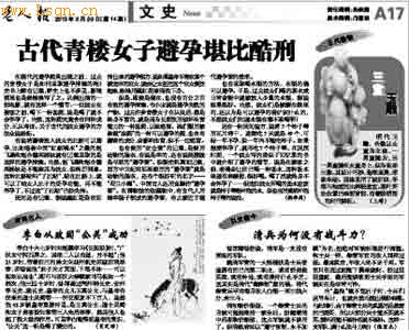 本文摘自《老人报》2013年3月20日第A17版,作者:佚名,原题:古代青楼女子避孕堪比酷刑