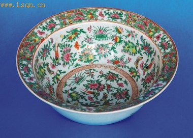 广彩花鸟盆(清)