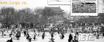 而到民国时期,北京人冰嬉主要是去各大冰场。据记载上世纪三十年代老北京著名的冰场主要有这么几处:什刹海、中南海新华门内的东湖、北海的五龙亭前、漪澜堂前、双虹榭前、陶然亭等等。