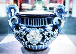 拉斯洛·帕拉克维茨收藏的蓝釉堆塑人物纹陶盆。