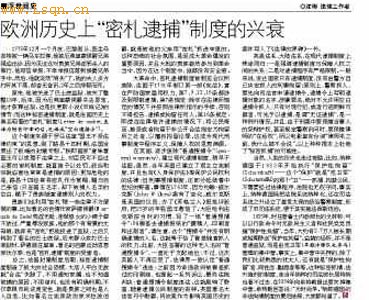本文摘自《南方都市报》2012年03月18日AA29版 作者:沈彬 原题为:欧洲历史上“密札逮捕”制度的兴衰