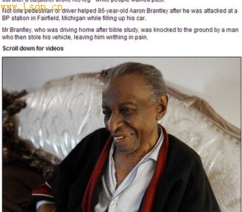 布兰特利二战期间曾在美国空军服役,退役后在克莱斯勒汽车公司当了30年焊接工。他的断腿已经复原。布兰特利表示,他不知道发生了什么事,也没看清袭击者的样子。他说:“当我爬向加油站的过程中,人们从我旁边走过,就像我不存在一样。”布兰特利称自己并不感到愤怒,但是如果有人像他那样在地上爬行请求救援,他肯定会停车给予帮助。
