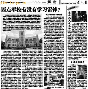 本文摘自《老人报》2013年3月6日第A14版,作者:佚名,原题:西点军校有没有学习雷锋?