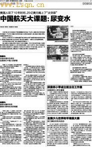 本文摘自:《钱江晚报》2013年9月19日第A0007版,作者:章咪佳 周丝韵,原题:《中国航天大课题:尿变水》