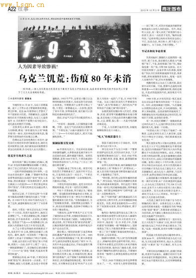 本文摘自:《青年参考》2013年12月4日A22版,作者:章鲁生 ,原题为《乌克兰饥荒:伤痕80年未消》