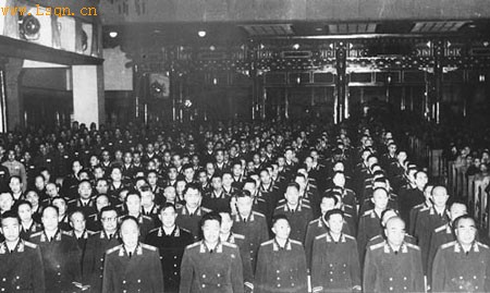 1955年9月27日下午,中华人民共和国主席授衔授勋典礼在北京中南海怀仁堂隆重举行。这是授衔授勋典礼现场。