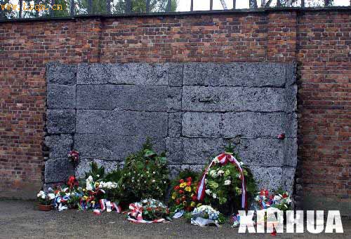 奥斯维辛集中营11号楼和12号楼之间的“死亡墙”。该墙因党卫军当年在这里随意枪杀囚犯而得名。每当纪念日,人们都会到这里献上鲜花,凭吊亡灵。