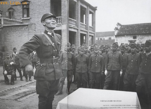 在芜湖日军战俘集中住所,中国军官用日语向日本战俘训话