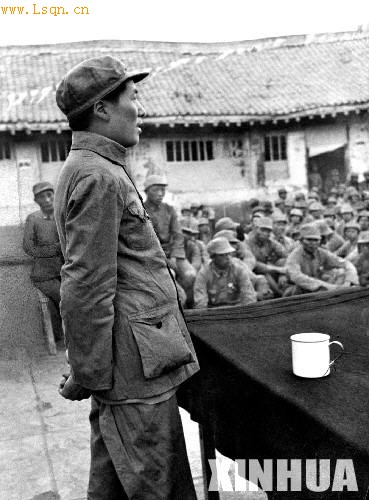 1938年5月26日,毛泽东在延安抗日战争研究会上讲演《论持久战》,至6月3日结束。毛泽东指出,抗日战争是持久战,最后胜利是中国的。这是1938年5月,毛泽东在延安中国人民抗日军政大学作《论持久战》的报告。 新华社发(资料照片)