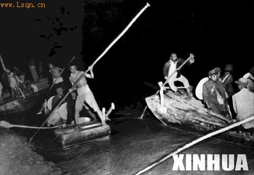 1947年6月30日,刘伯承、邓小平率晋冀鲁豫野战军主力第一、第二、第三、第六纵队13个旅12万余人强渡黄河天险,一举突破国民党军黄河防线,转入外线作战,揭开人民解放军战略进攻的序幕。 图为刘、邓大军夜渡黄河(资料照片)。