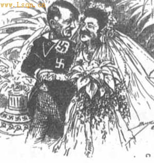 二战前讽刺苏德关系的漫画 图片来源:凤凰网