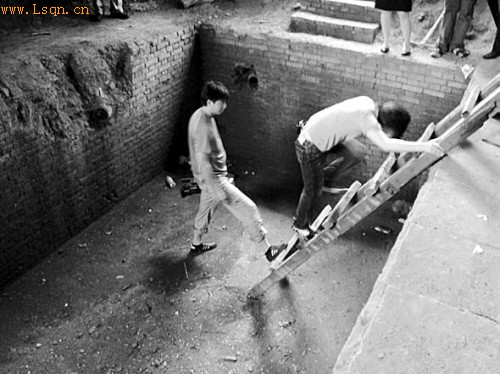 这次考察,我们看到了已发掘出的一处离营房不远的地道和地下室。该地下室呈长方形,面积30多平方米,1.8米左右深,用坚固的水泥铺底,四周墙面使用与地面营房相同的红砖砌成。地下室可容纳30多人,地道连着地下室,直通战俘营外,可进可出,显然是为了防备飞机轰炸和临时偷袭而准备的。这个地下室和地上的战俘营房形成一体,设计周密。