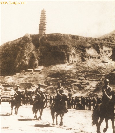 延安宝塔山下的骑兵。资料照片