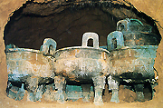 青铜器窖藏为一长方形竖穴连接一个大致呈圆形的龛。竖穴为南北向,长4.7米,东西宽2.5米,穴底距地表7米。竖穴自深2.5米。其南部的龛底径为1.6×1.8米,高1.1米。竖穴与龛的连接处,用夯土密封,27件青铜器放置于龛内,保存状况良好。