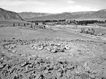 古墓群的分布呈条状,沿特克斯河岸延伸而下,分布较散。站在古墓群的挖掘地,记者发现周围水草丰茂,视线开阔。考古人员告诉记者,从古墓群的分布情况来看,在距今2000多年前,这个古墓群的所在地也是一个风吹草低现牛羊的风水宝地。