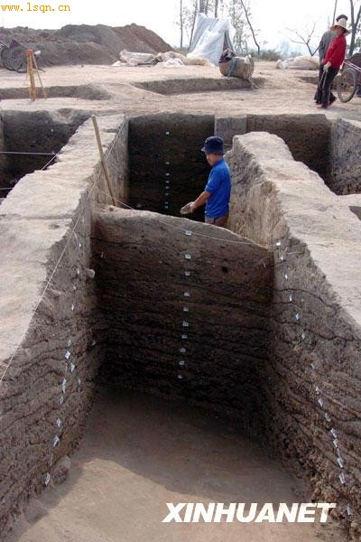 周公庙遗址出土甲骨文的灰沟发掘现场(拼版照片,2008年11月8日摄)。新华社记者 冯国摄