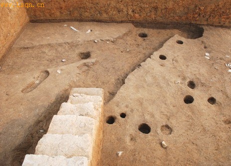 图五 龙船坪遗址T4五层下柱洞及灰沟