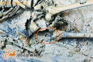 墓主人腰间有个玉环。