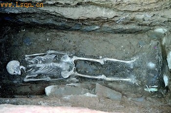遗骸骨架很大,据推测墓主身高有1.8米。