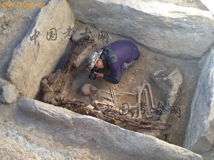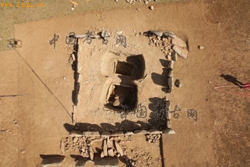 sp; SM4位于墓地的北部,地表保存有方形石围,边长约7米,石围由石板构成,每一侧石围由7~9块石板(块)组成,石板平均宽度为0.8~1.1米,露出地表部分的高度约0.5~0.8米。其中西侧边石板中部保存有缺口。石板内中部有南北两个墓穴,墓穴基本为东西向,墓穴之中均有石棺。墓穴外侧的地表上,沿墓口附近摆布小卵石作为墓口标志,卵石一般约8~15cm大小。SM4-1位于方形石围内的北部,长椭圆形竖穴,石棺距墓穴口1.5米左右,由经过人工修整的四块石板(材)构成四壁,石板平整,无底板,盖板石由大石块构成,石棺密封较好。石棺与墓穴之间的空隙填细碎卵石和土。底部保留经火烧过的人骨碎片。SM4-2位于石围内南部,两座墓穴间隔约30cm。墓穴略近长方形,墓穴底部也为石板构成的石棺,石棺的盖板石为多块较薄的片石构成,片石表面还保留了后约3cm的黄膏泥。石棺内保留了木质葬具,由于盖板石坍塌的原因,木质葬具的北侧基本无存。木葬具由直径约13~15cm左右的树干组成,已朽。保存较好的位置可以分辨出有5层,用榫卯拼接。该石棺内葬一青年男性(30岁左右),骨骼保存完好。侧身屈肢,头西面北。随葬有包金铜耳环、陶罐以及羊距骨等。