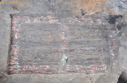 修补夯土下有较厚烧土堆积,堆积中夹杂大量瓦片、烧红墙体、炭化木块及烧熔的铜构件,堆积下部发现保存状况较好的大型彩绘木门遗迹一处,门为对开,现存一扇,木制门板已腐朽殆尽,仅存彩绘痕迹。门高278(不含门轴)、宽155厘米,据遗留痕迹推测厚度约为10厘米。彩绘图案分为边框、门板两部分,边框宽约20厘米,白地红彩,纹饰为两行相对的卷云纹;门板饰黑红相间纹饰。烧土堆积的形状为自台基边缘向斜下方倾斜,推测为台上殿堂毁弃后倾倒的建筑垃圾,发现的木门为台上宫殿建筑的大门。