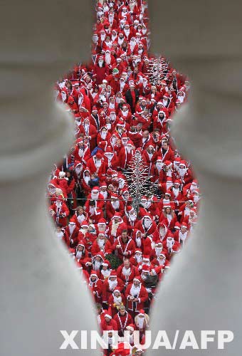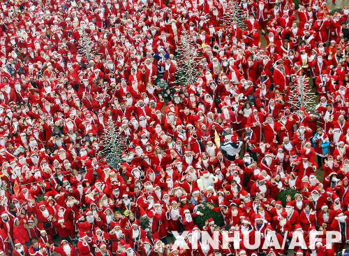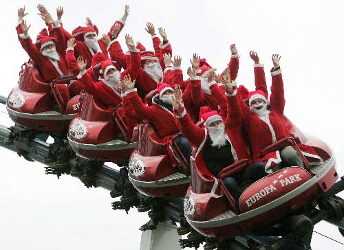 “圣诞老人”乘坐过山车11月27日,在德国鲁斯特的欧罗巴公园,“圣诞老人”聚在一起合影。当天,2700多人装扮成“圣诞老人”来到该公园,试图打破“圣诞老人”聚会的世界记录。 新华社/法新
